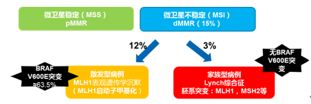近些年,在我国结直肠癌发病率呈上升趋势。其发生途径按照分子变化分为(1)以DNA微卫星改变为特征的微卫星不稳定型(microsatellite instability,MSI);(2)以部分或整个染色体为途径的染色体不稳定型(chromosomal instability,CIN)。结直肠癌约15%经MSI途径发生。其中约12%为散发性 MSI 结直肠癌,发生机制为MLH1 yth游艇会yth206启动子发生甲基化使该yth游艇会yth206沉默、发生微卫星不稳定性而致的 CRC。此外,由 MLH1、 PMS2、 MSH2、 MSH6 等 MMR yth游艇会yth206发生胚系突变所致Lynch 综合征,约占3%。该综合征是一种常染色体显性遗传病。患者除了发生结直肠癌,还可发生子宫内膜癌、胆管细胞癌等肠外肿瘤。