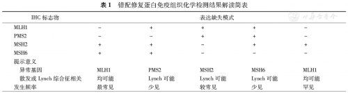 总体来说,免疫组化和PCR两种检测方法的敏感度和特异性均在90 %以上,且文献报道二者一致率可以达到97.8 %以上。错修复蛋白免疫组化检测结果如表1所示,其中最常见的免疫组化表达模式为MLH1-/PMS2-和MSH2-/MSH6-。与PCR方法相比,IHC检测结果可以揭示缺失的yth游艇会yth206种类,有利于下一步yth游艇会yth206测序分析或进一步筛查Lynch综合征。免疫组化由于简单、经济且更易于在病理科召开推广。此外,免疫组化对组织样本量要求不高,穿刺活检也适用。所以,免疫组化检测结直肠癌组织MMR可以作为一种初筛的手段。需要注意的是,少数错义突变导致错修复蛋白功能异常,由于保留“抗原性”导致免疫组化检测出现假阳性。PCR方法则可互补,但由于技术相对复杂、费用较高使得在基层病理科较难推广。